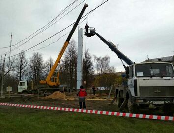 Монтаж столбов освещения